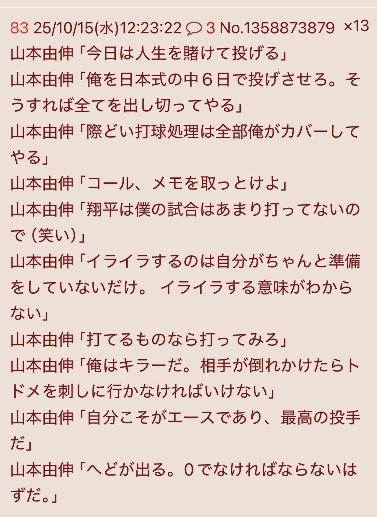 … | 712無念Nameとしあき25/10/15(水)20:31:27No.1358971615+山本は日本時代からビッグマウスってのはネタ?一部本気にしちゃったぞ |
