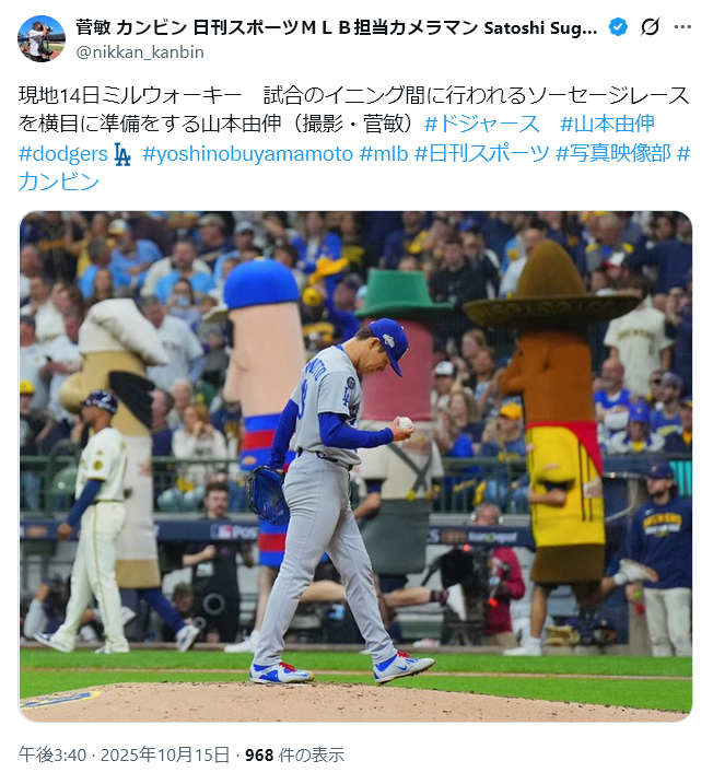 … | 660無念Nameとしあき25/10/15(水)20:05:21No.1358963061+ドジャースは試合の合間に謎のマスコットレースやらないのか? |