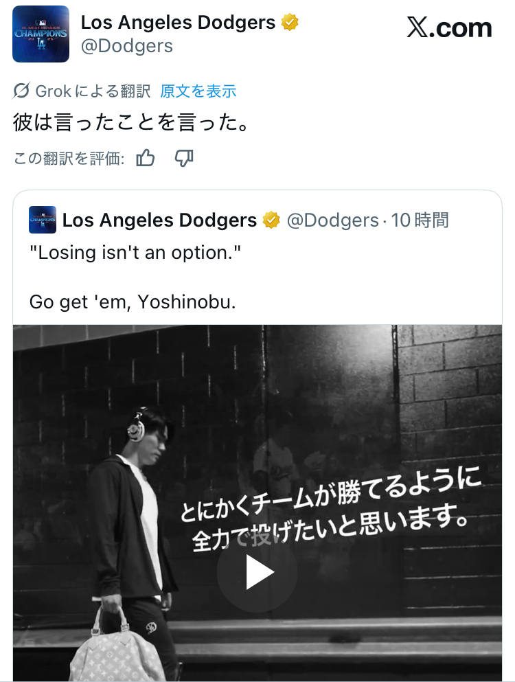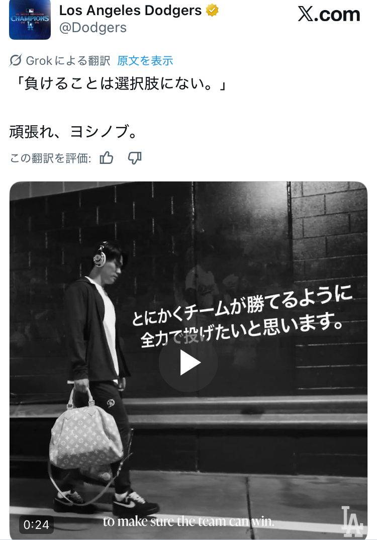 … | 661無念Nameとしあき25/10/15(水)20:06:09No.1358963326そうだねx13山本由伸「負けることは選択肢にない」 |