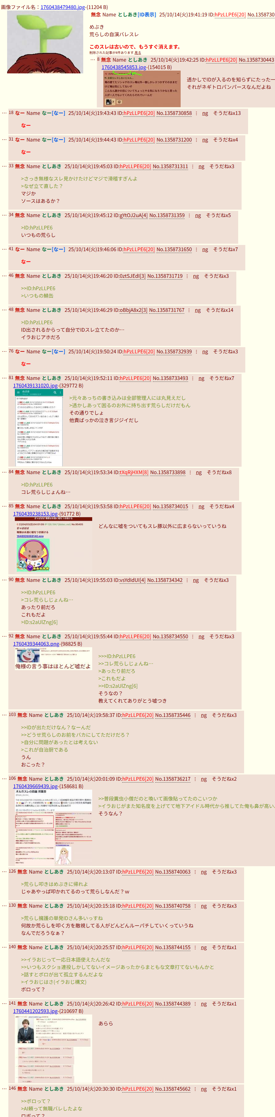 … | 44無念Nameとしあき25/10/19(日)09:58:19No.1359806985そうだねx7 1760835499153.jpg-(269403 B) ![]() >めぶきスレ荒らしてるのはこいつだな |