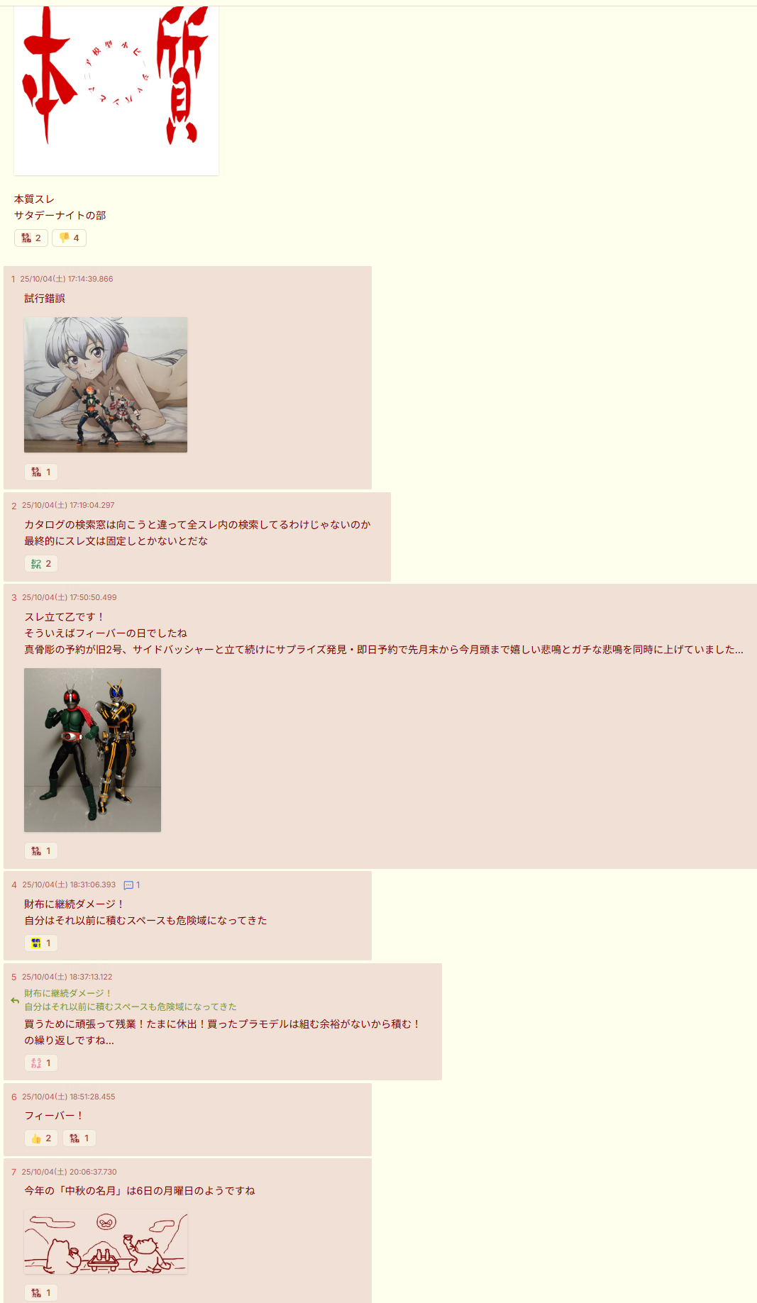 … | 253無念Nameとしあき25/10/19(日)10:51:01No.1359816508+>避難所のキチガイどもはモデラー粘着スレで模型系にdel誘導して荒らしてたが |
