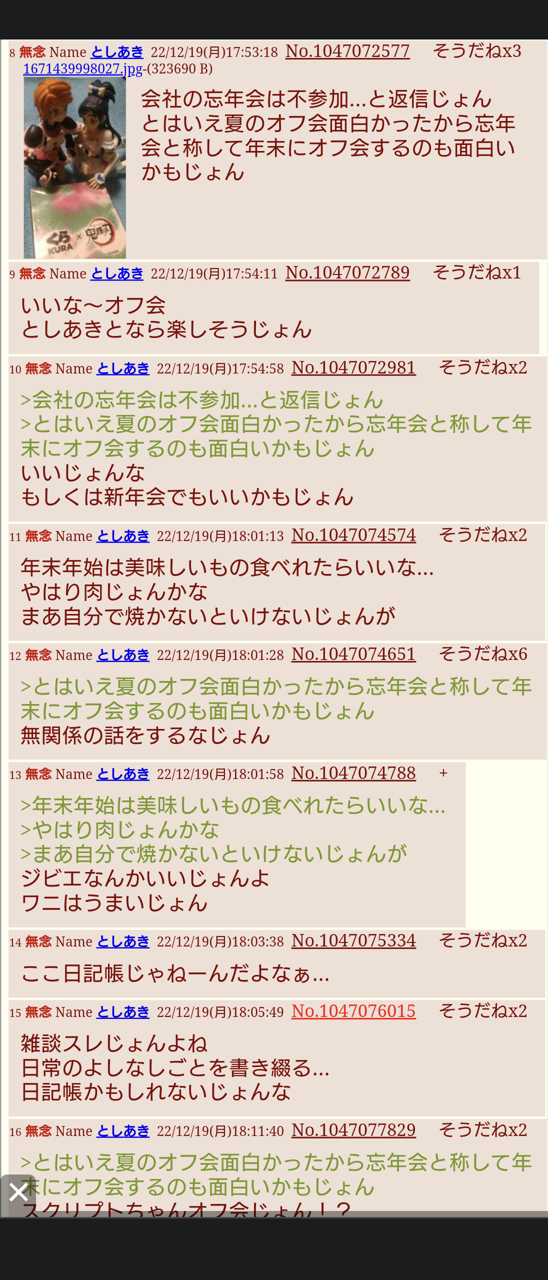 … | 291無念Nameとしあき25/10/19(日)11:17:19No.1359821615そうだねx1会社の忘年会には行かない |