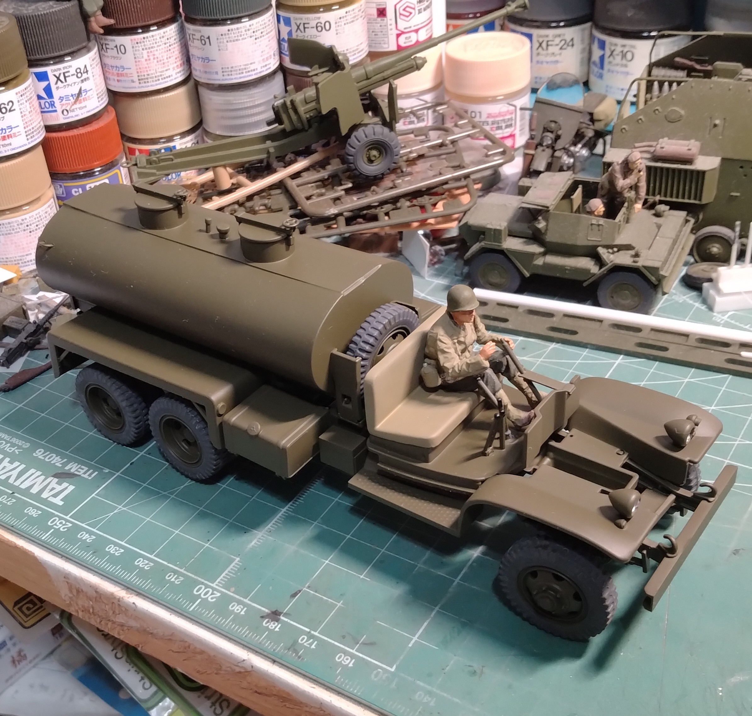 … | 167無念Nameとしあき25/10/20(月)00:00:07No.1360025573そうだねx1戦車は全部ロシアングリーンで塗ってウェザリングカラーぶしゃーで完成 |