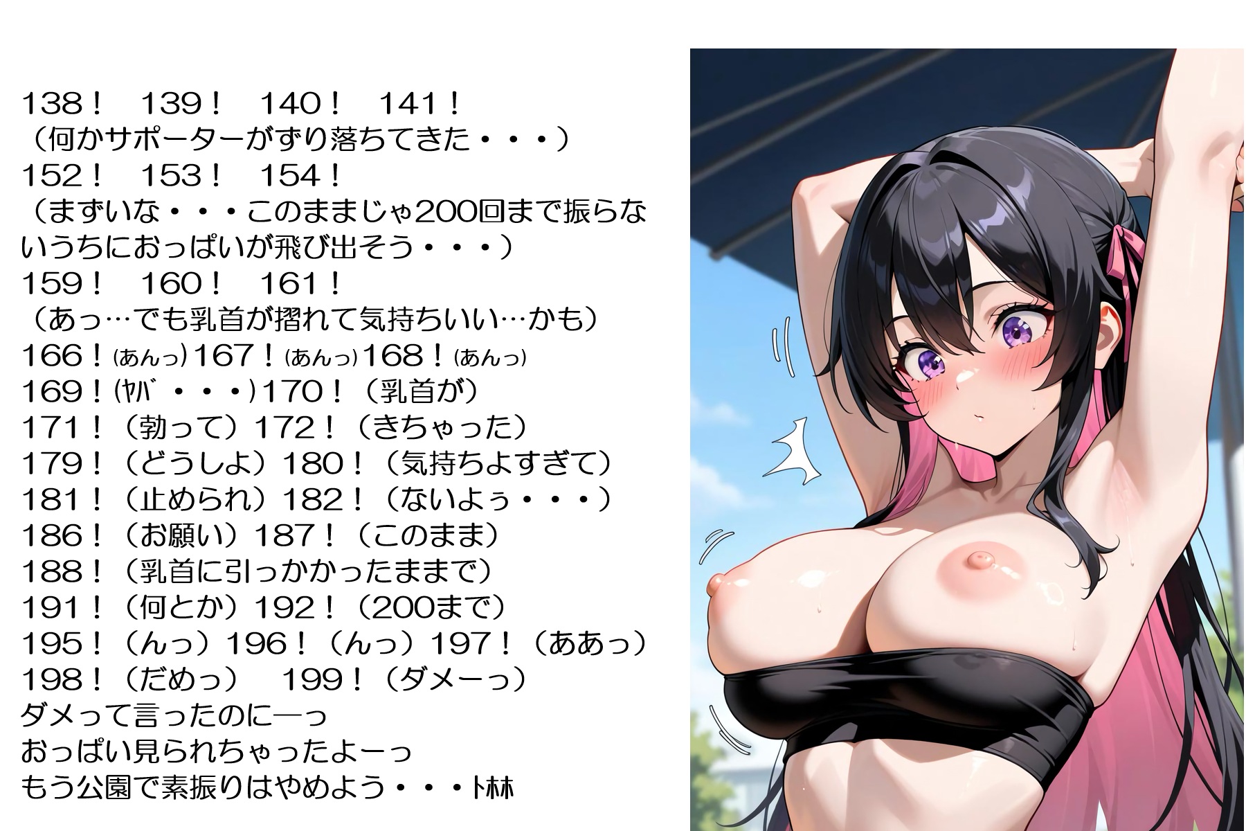 … | 109無念Nameとしあき25/10/20(月)03:21:36No.1360048390+ 1760898096042.jpg-(1434581 B) ![]() 背伸びしたら服もブラも壊れてしまった女の子というシチュでお願いします |