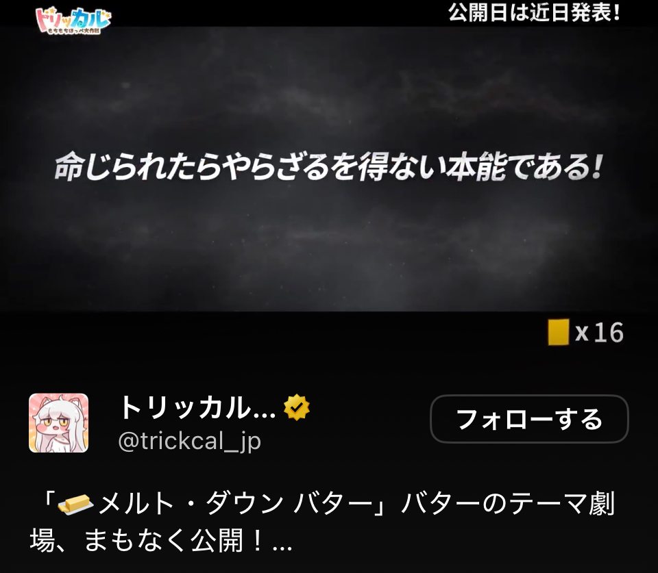 … | 1無念Nameとしあき25/10/21(火)20:56:18No.1360430264+>トリッカルスレ バターください |