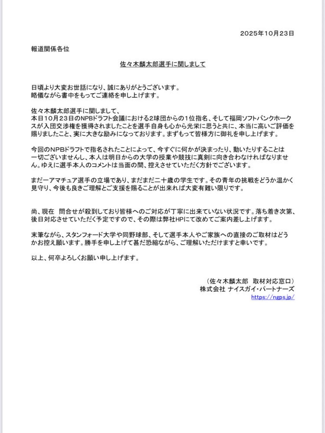 | … | 85無念Nameとしあき25/10/23(木)21:28:43No.1360877200そうだねx5 1761222523514.jpg-(126674 B) 王貞治球団会長は指名後、電話で会話したことを明かし「すごく喜んでくれて、こっちも嬉しかったね。本人もありがとうございますと言ってくれてね。ホークスに来ることになったら、一緒に高い目標をもって頑張ろうと伝えました」とコメントした。 |
