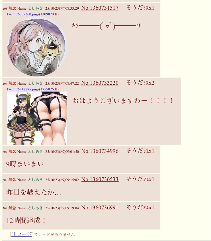 | … | 11無念Nameとしあき25/10/23(木)21:32:19No.1360878242+>ついに12時間越え |
