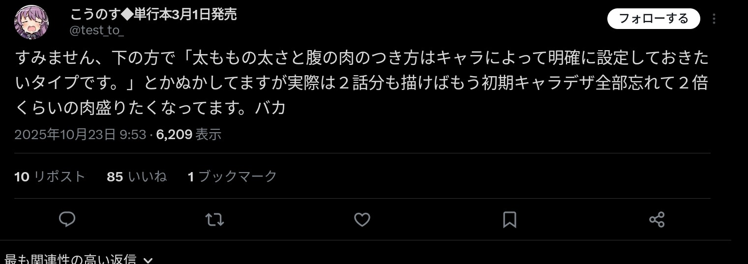 | … | 189無念Nameとしあき25/10/24(金)08:22:31No.1360950350そうだねx3 1761261751007.png-(549998 B) 2部カルダモンはまだ眉毛性癖に脳を完全に支配される前のあfろ先生が自身に残った女体へのリビドー全てを込めた最後の一般性癖エッチキャラとされる |
