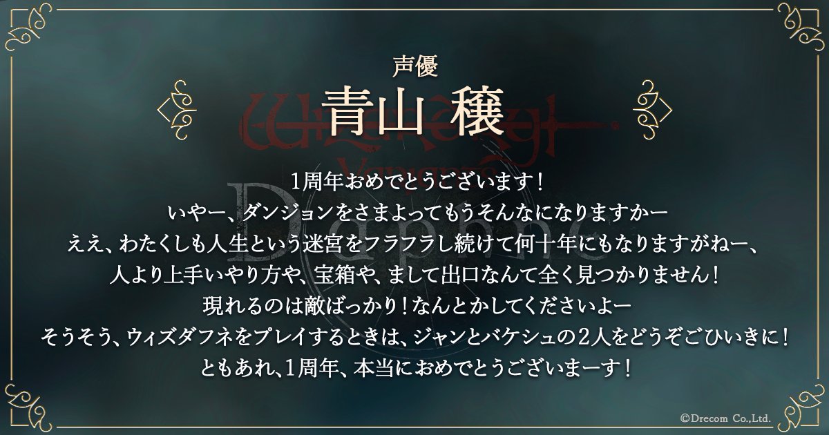| … | 6無念Nameとしあき25/10/28(火)18:00:52No.1362048039そうだねx7 1761642052578.jpg-(125918 B) ジャン役、バケシュ役、アルフレッド役を演じる声優の青山 穣氏より、ウィズダフネ1周年のお祝いの言葉をいただきました。 |