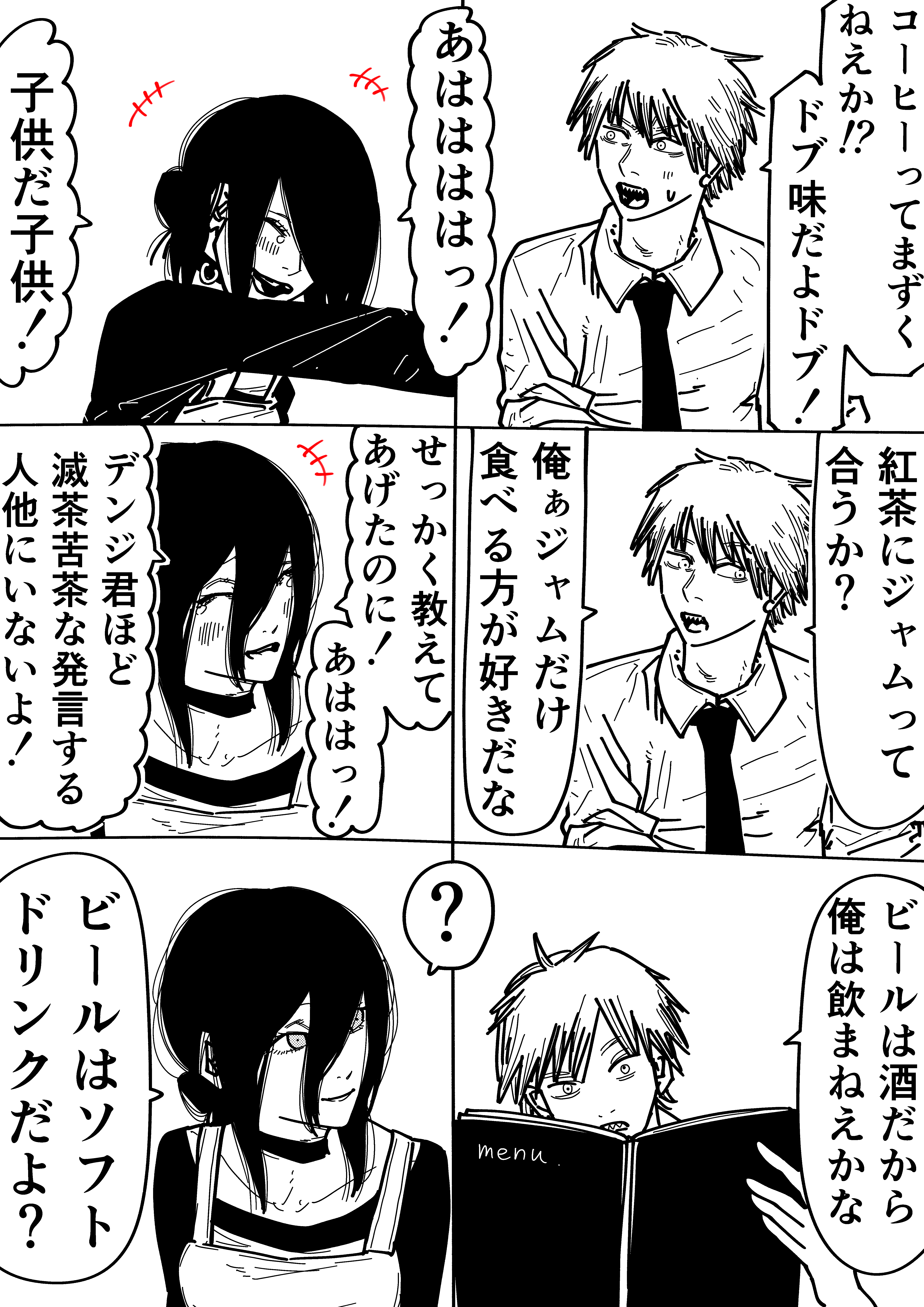 | … | 95無念Nameとしあき25/10/30(木)02:19:21No.1362389479そうだねx4 チェンソーマン世界のバイト先だと一番まともなバイト先カフェニ道 |