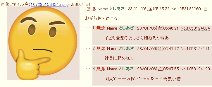 | … | 42無念Nameとしあき25/10/30(木)05:12:39No.1362394396+ >としあきなら全て助けてくれると信じきってるジジイですから |