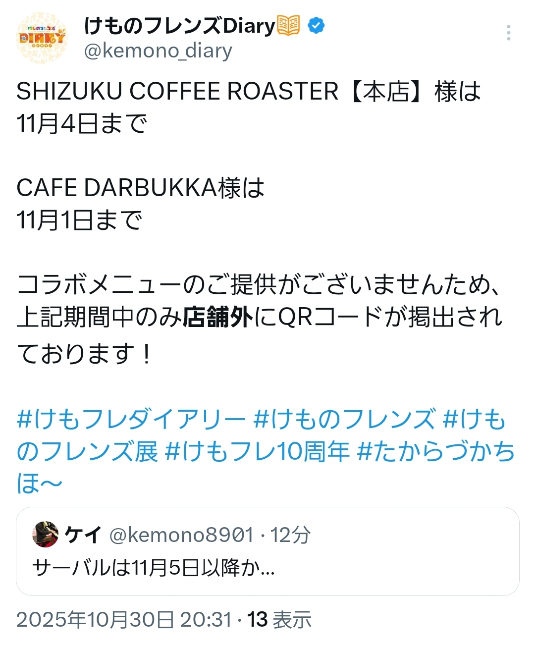 | … | 87無念Nameとしあき25/10/30(木)21:08:05No.1362552403+ >肉ってフレンズというかまだフレンズ化してない野生動物を捕食する子じゃなくて良かった |