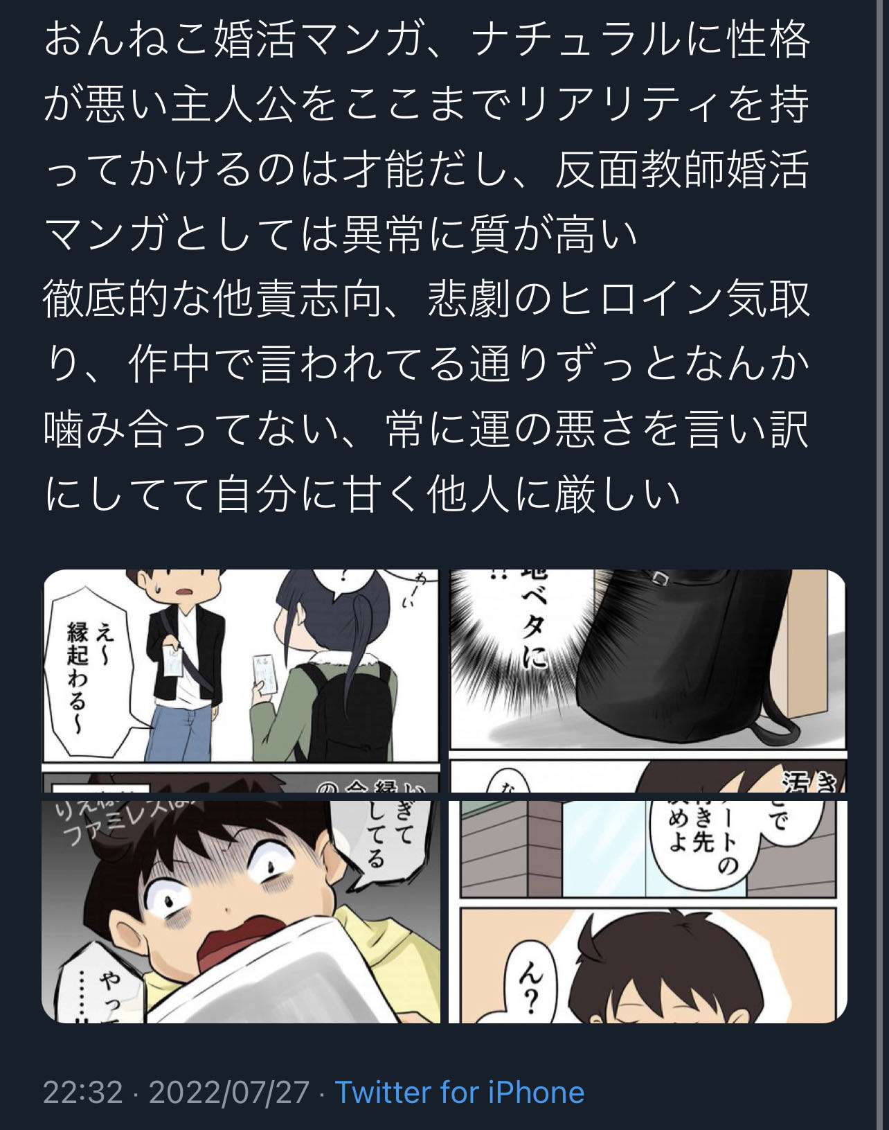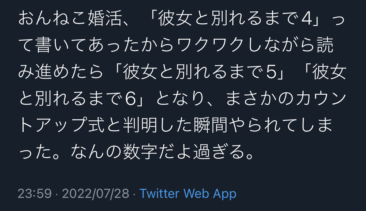 | … | 56無念Nameとしあき25/10/31(金)08:44:27No.1362646108そうだねx1あの婚活漫画でモテた気になってるとしたらかなりやばい… |