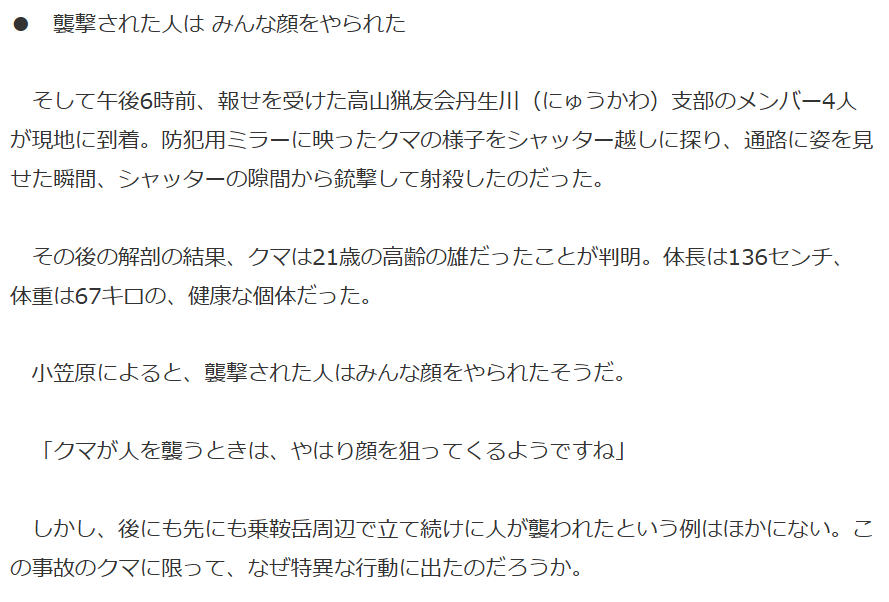 | … | 21無念Nameとしあき25/10/31(金)08:41:40No.1362645743そうだねx1>羅臼岳で7月に熊を餌付けしてた事案があったんだけど次の8月に人間が襲われて亡くなったからもう人災含んでるぜコレ… |