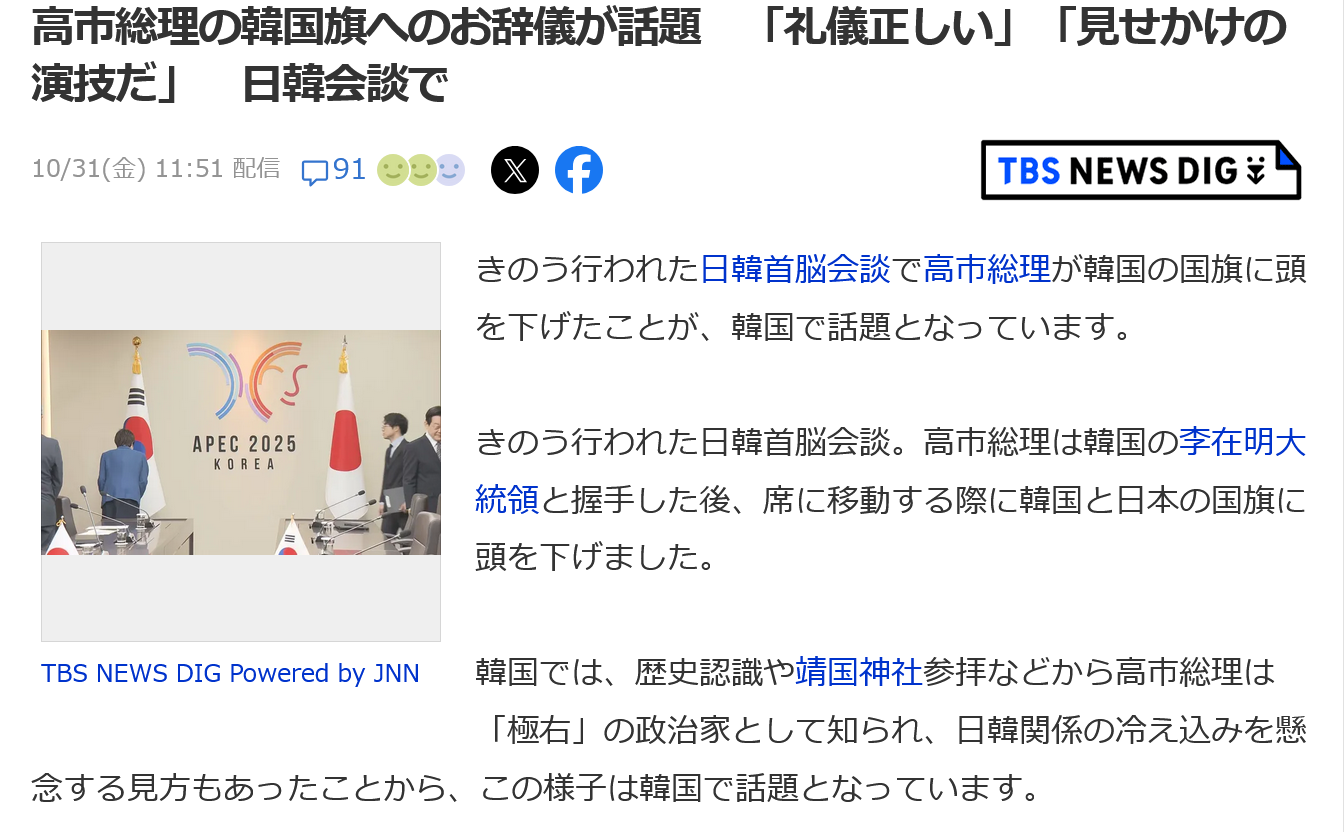 | … | 523無念Nameとしあき25/10/31(金)14:37:22No.1362703778+ 1761889042869.jpg-(290977 B) >>良くも悪くも高市も安倍と同じで親韓なんだろう |