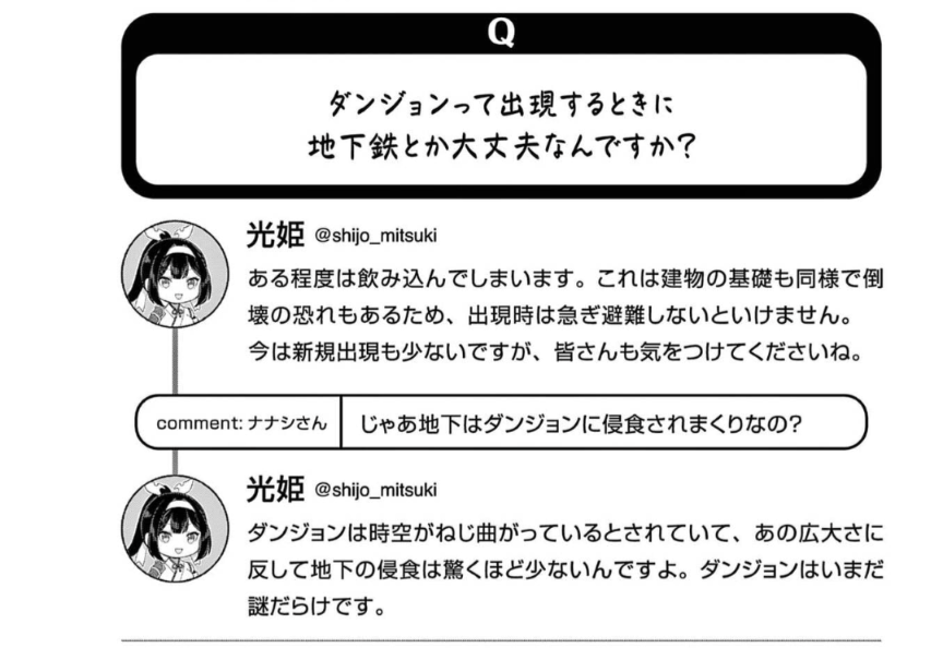 | … | 50無念Nameとしあき25/11/03(月)12:34:15No.1363486917+ 1762140855153.png-(265813 B) >ダンジョンが出現する時に元々あった地下鉄や下水などの地下施設と衝突しなかったのだろうか  |