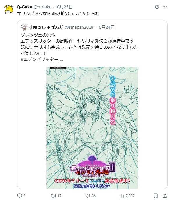| … | 84無念Nameとしあき25/11/03(月)20:39:45No.1363602548+ 1762169985207.jpg-(109742 B) >そういやトリヤーマ先生が生前エデンズリッターグランツァとコラボしたいと言っていた気がするツェ  |