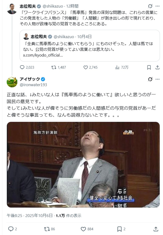 | … | 73無念Nameとしあき25/11/03(月)20:19:53No.1363596125そうだねx9この人なんでずっと党首やってんの?  |