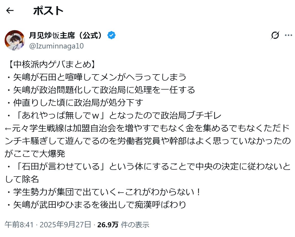 | … | 583無念Nameとしあき25/11/03(月)22:39:39No.1363636826+革命戦士の自己批判が足りてないんじゃないか?総括せよ  |
