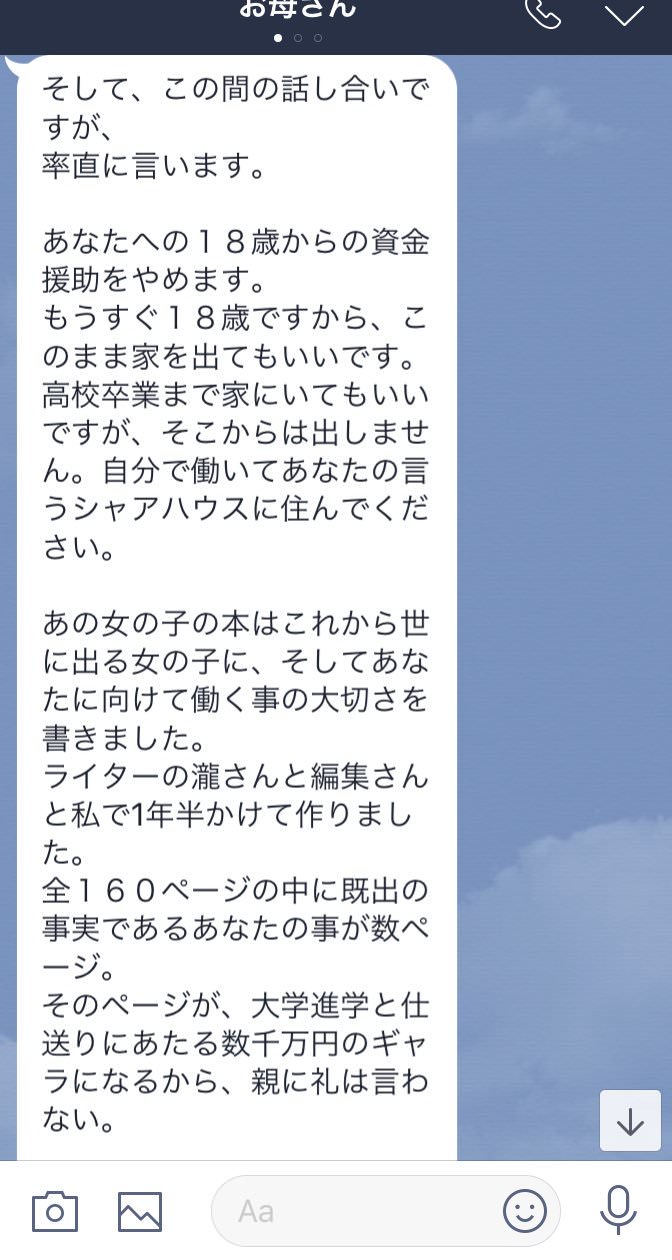 | … | 125無念Nameとしあき25/11/04(火)09:55:07No.1363697531そうだねx2>お前のプライベートを切り売りした金で育ったって言われても子供からしたらふざけんなだよなあ |