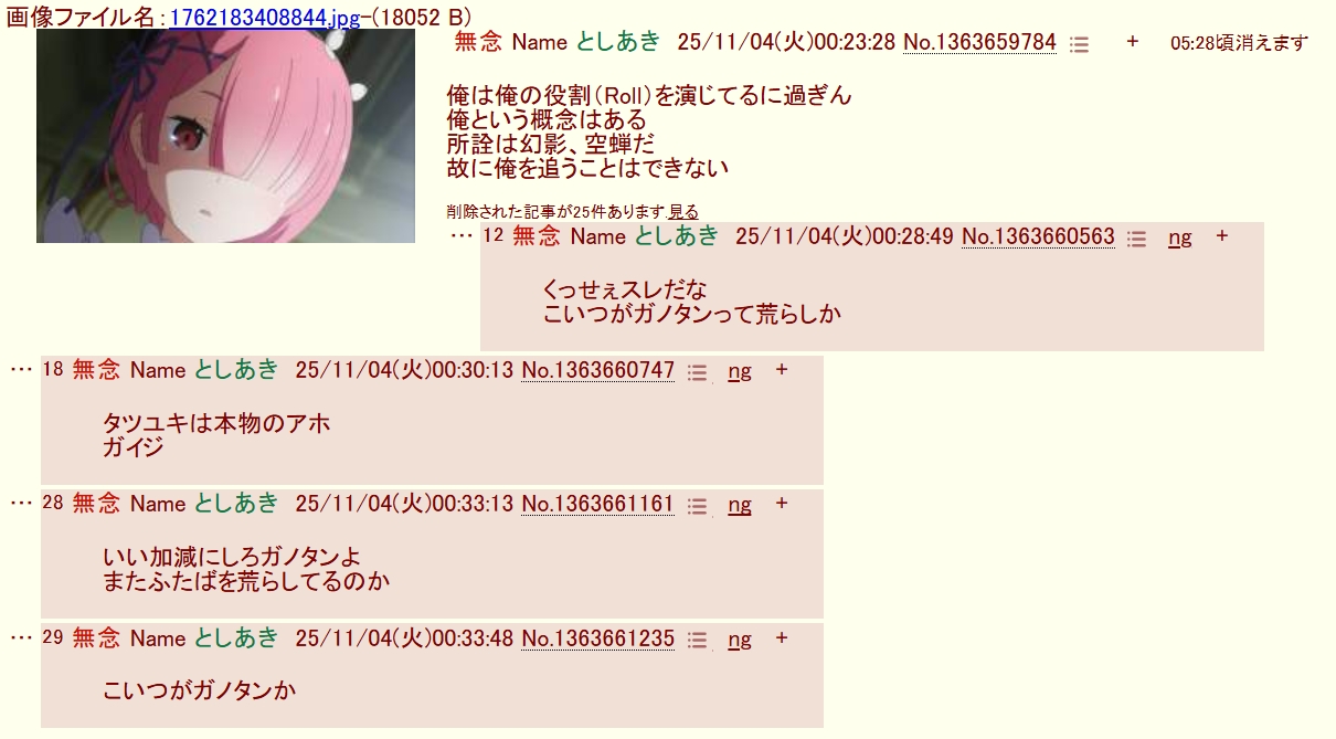 | … | 50無念Nameとしあき25/11/04(火)10:19:16No.1363700594そうだねx3>他のスレでも発狂してるね |