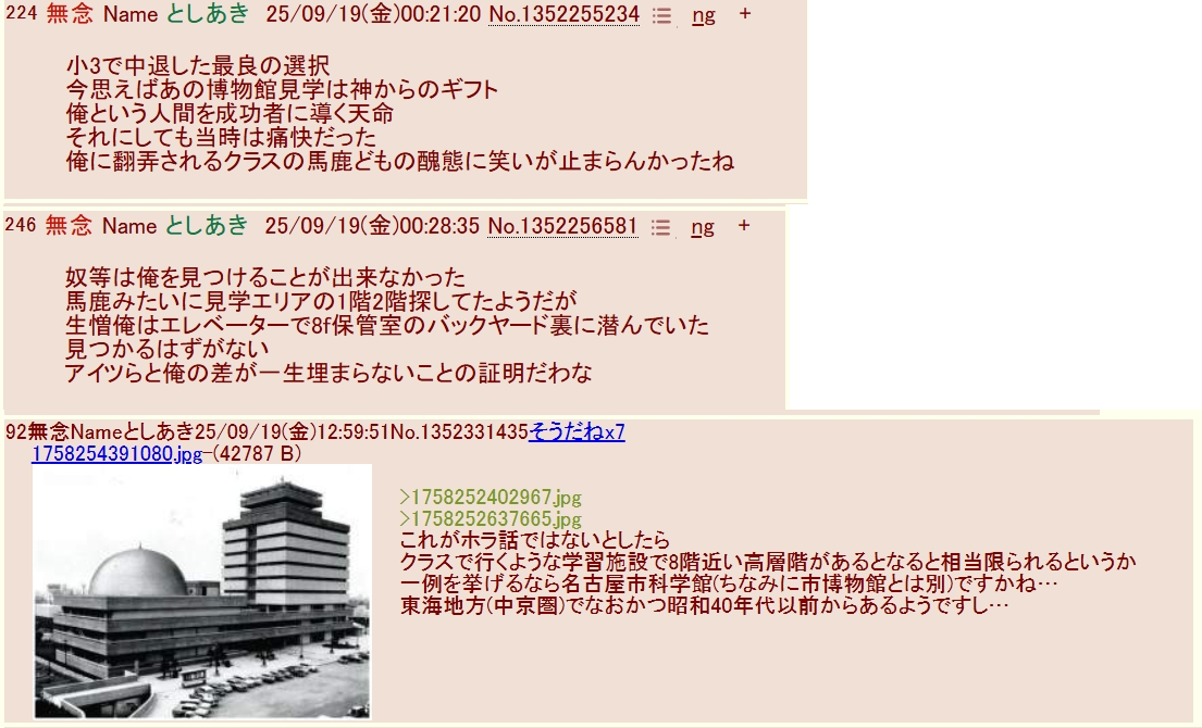 | … | 286無念Nameとしあき25/11/04(火)15:52:56No.1363752371そうだねx4sage爺小学校に楽しい思い出無かったのをまだ悩んでるの? |