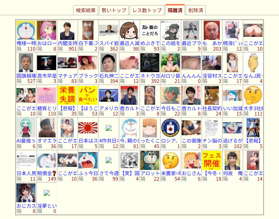 | … | 305無念Nameとしあき25/11/04(火)11:14:16No.1363707930そうだねx2手段を選ばず匿名掲示板を占拠しようとしてるヤツとか |