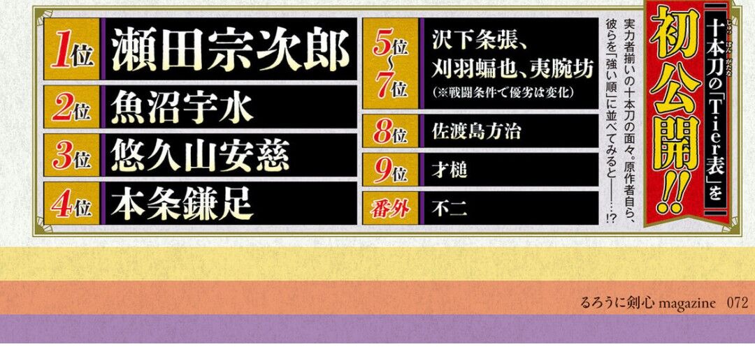 | … | 289無念Nameとしあき25/11/04(火)17:10:07No.1363763632そうだねx2作者曰く「剣心VS志々雄は志々雄の勝ち逃げ」なので格付けで言えば志々雄の方が上だろうな・・・ |