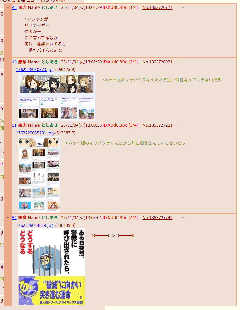 | … | 129無念Nameとしあき25/11/04(火)15:04:48No.1363745351そうだねx9 1762236288029.jpg-(16718 B) >にじさんじリスナーって犯罪者か異常者しかいないの? |
