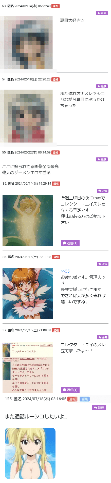 >捕捉だけど古いアニメのキャラスレでエロ画像ペタペタやって乞食もやってるよスレ豚