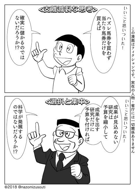 | … | 71無念Nameとしあき25/11/04(火)17:42:30No.1363769035+>アベノミクスのためすぐに儲けが出る応用部門だけに投資を「選択と集中」したのが安倍政権 |