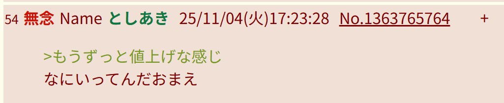 | … | 12無念Nameとしあき25/11/04(火)17:11:12No.1363763814+>昨日夜は凄い発狂ぶりだったよ |