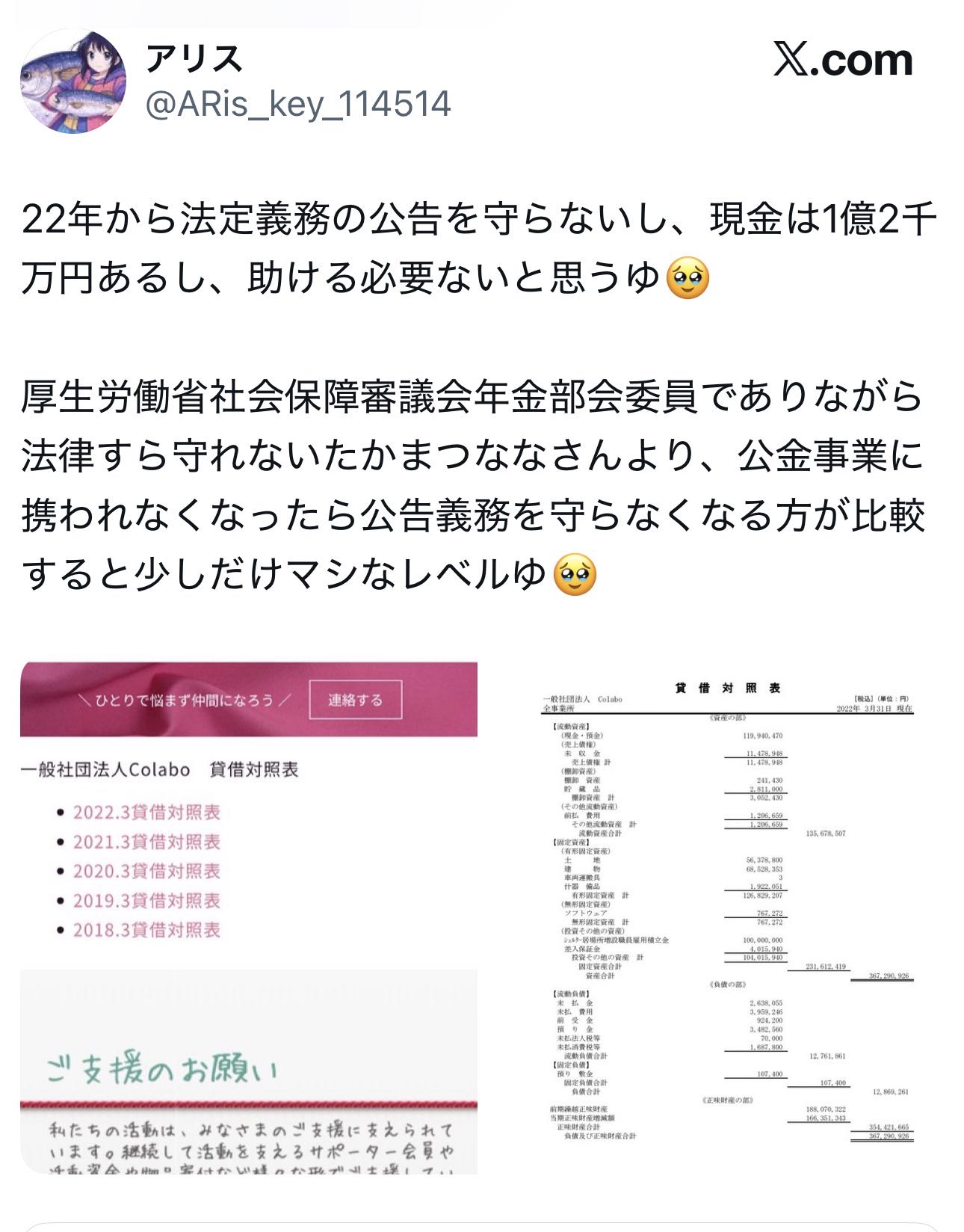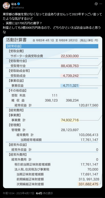 | … | 620無念Nameとしあき25/11/04(火)23:19:30No.1363855147そうだねx1NPOは利用者から貰うお金だけではやっていけないから寄付金を貰ってる |