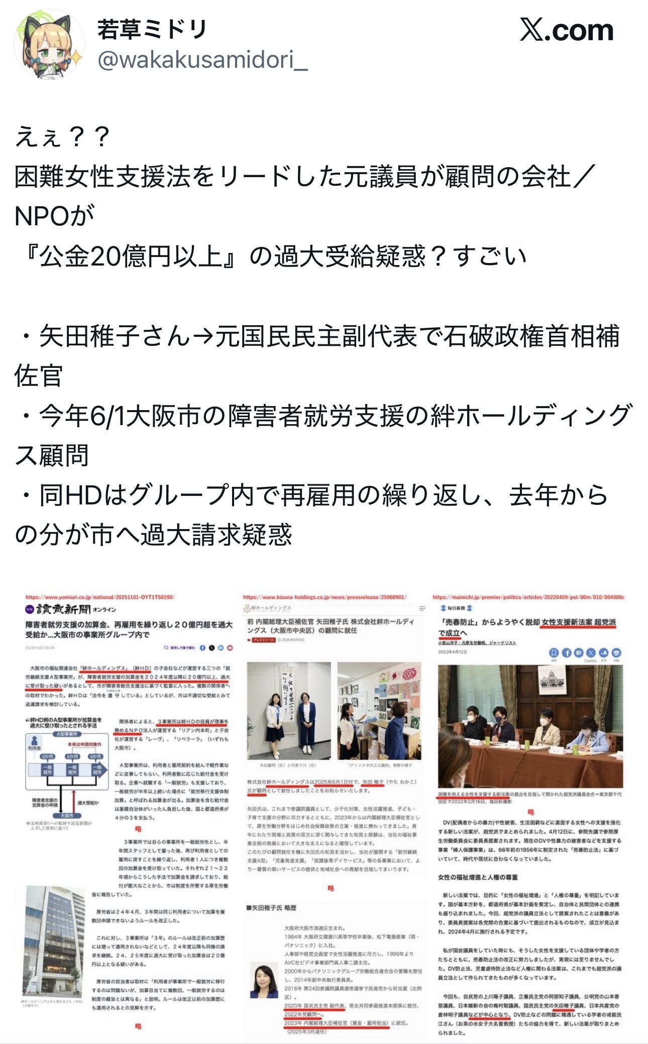 | … | 563無念Nameとしあき25/11/04(火)21:59:48No.1363835312そうだねx2>仁藤さんは参政党の選挙演説の邪魔しに行ってこけて刑事告訴したやろ |