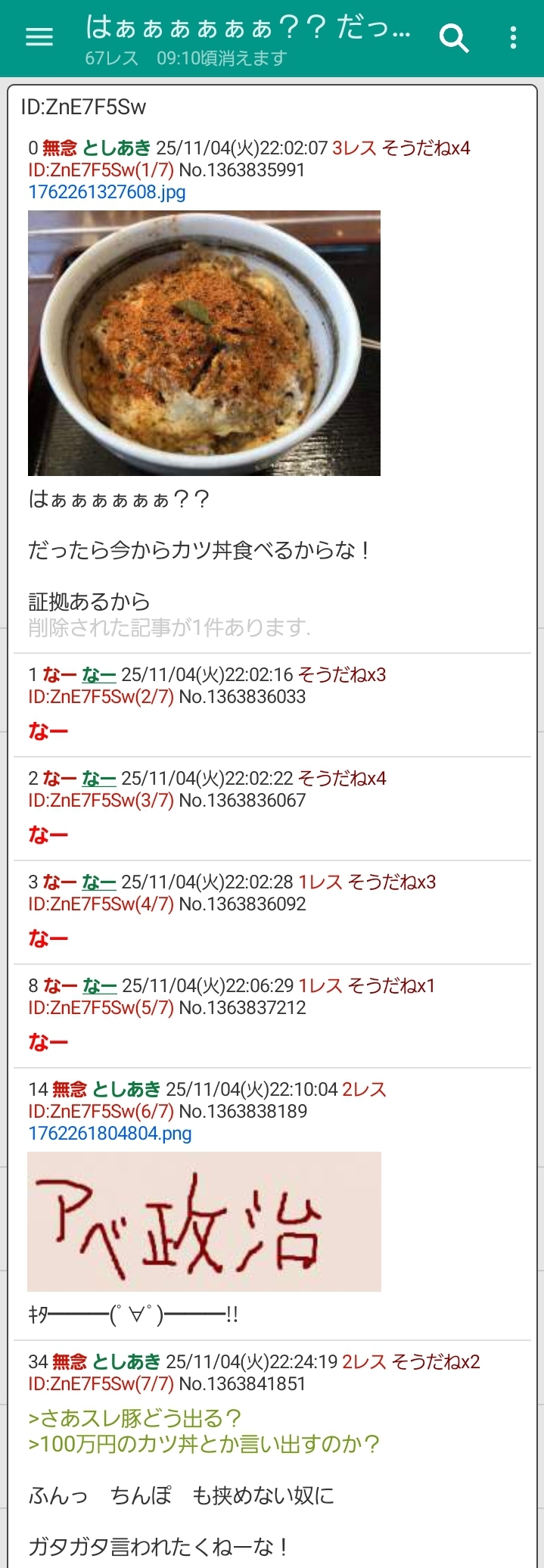 | … | 18無念Nameとしあき25/11/04(火)22:13:29No.1363839050そうだねx5カツ丼食べられないからって発狂すんのやめなよ |