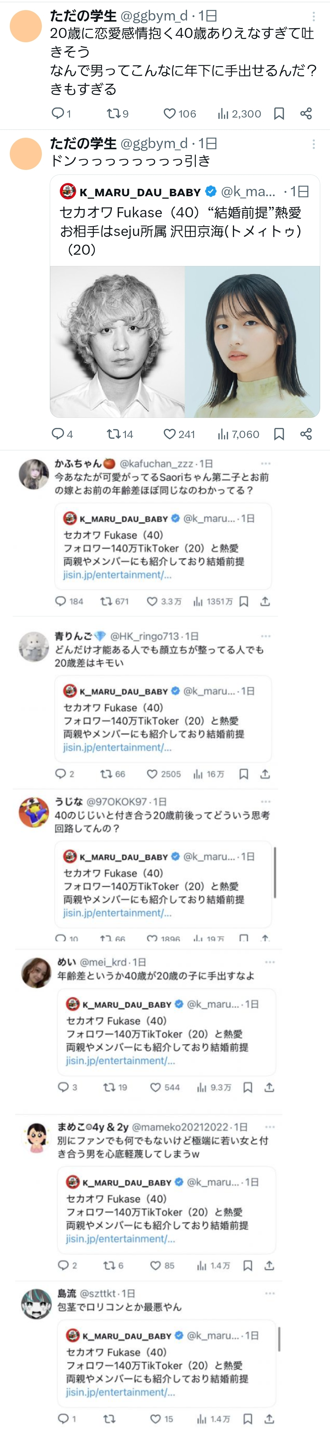 | … | 17無念Nameとしあき25/11/05(水)00:31:46No.1363868496そうだねx4そんなに若い相手がいいならどうして自分が若いうちに動かなかったんだろうっていう不思議 |