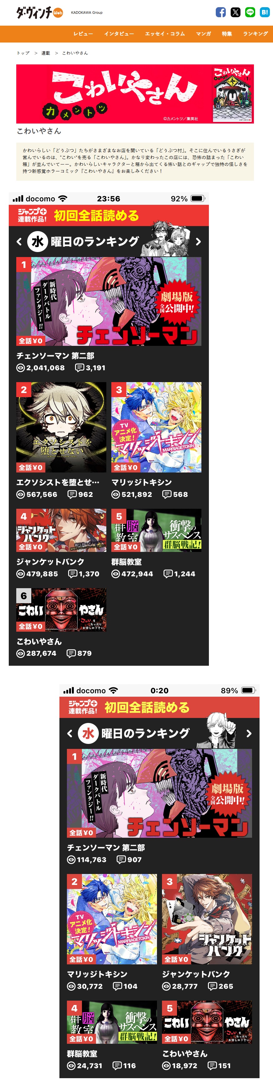 | … | 173無念Nameとしあき25/11/05(水)13:00:42No.1363940130+ 1762315242415.jpg-(172727 B) 受賞作品はジャンプラに載るので勘違いしてるとしあきも多いが新世界漫画賞はジャンプ本誌の賞なのでさむわんが本誌なのは当然の事だったりする |