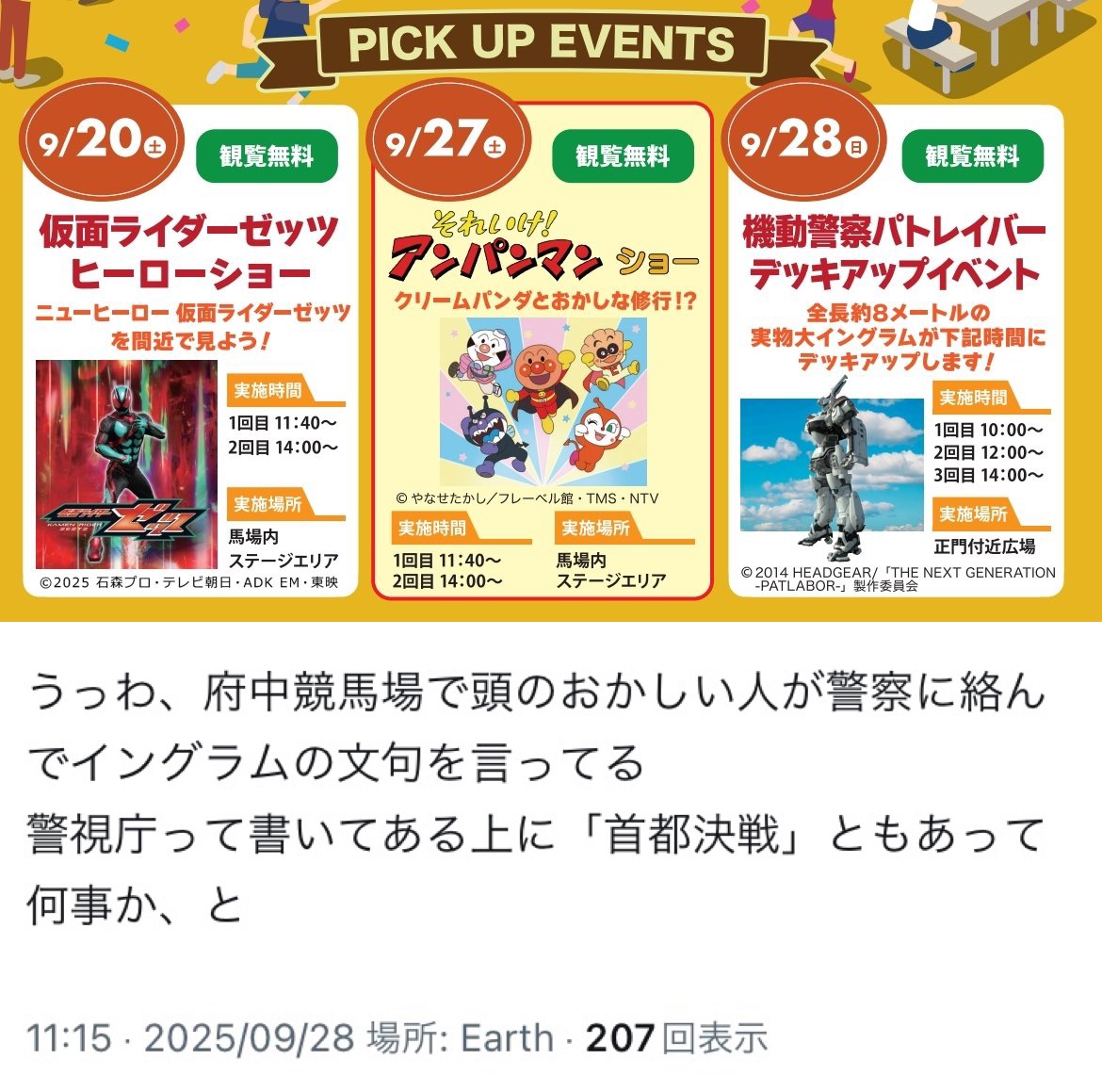 | … | 16無念Nameとしあき25/11/05(水)08:32:31No.1363898443+>前日にドローンが墜落したイベント |