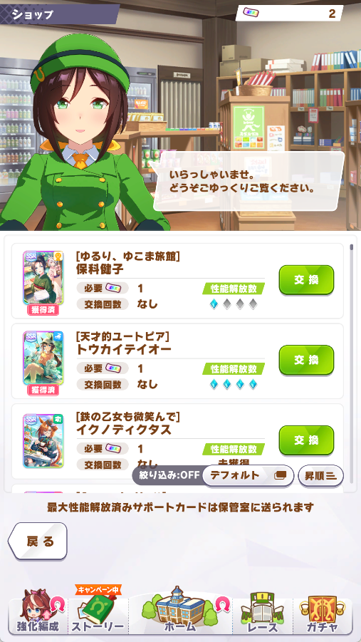 | … | 12無念Nameとしあき25/11/05(水)10:16:01No.1363910881+ブルマ女将1凸テイオー完凸で交換チケ余ったけど今回の2枚抜いたら4周年までなんだよな |