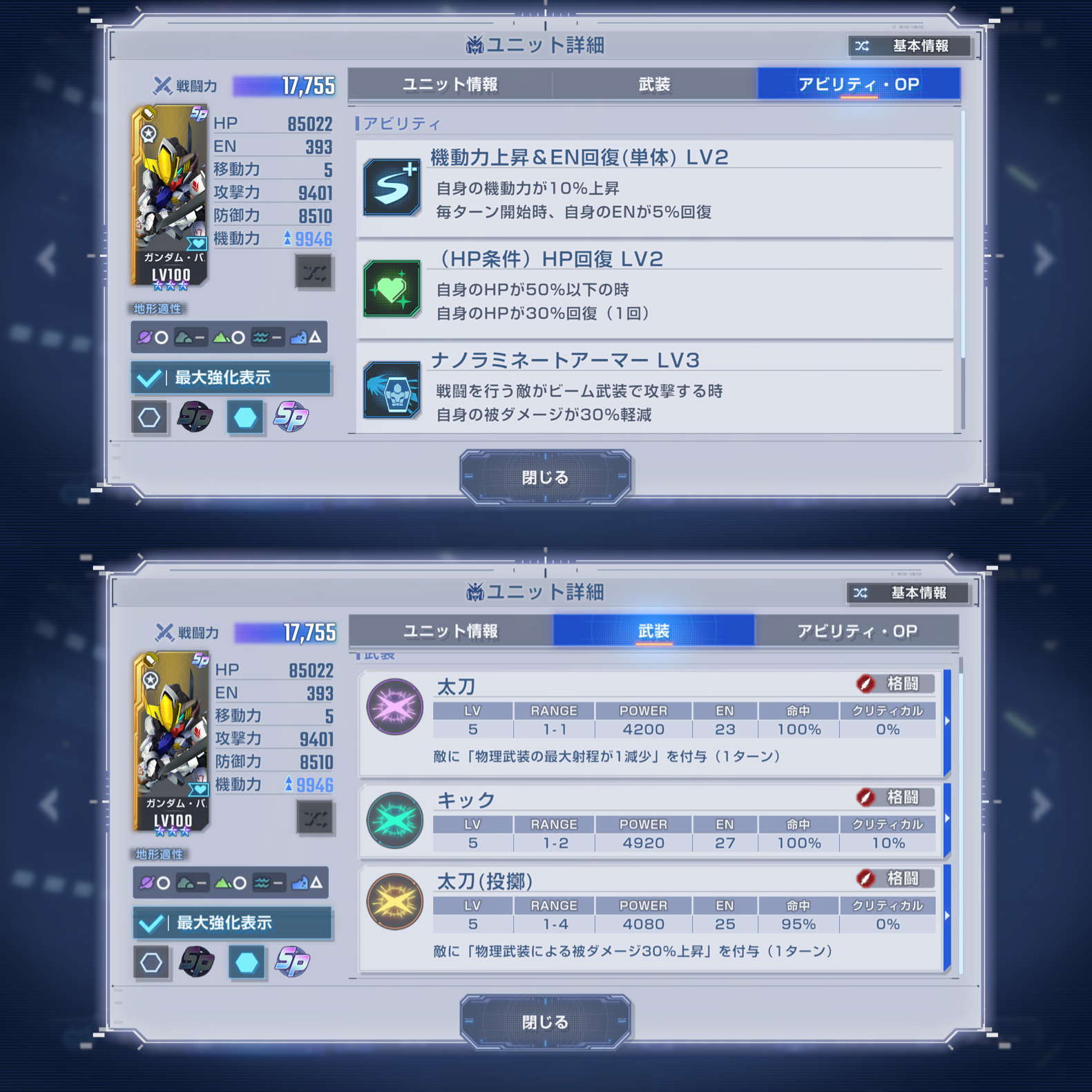 | … | 705無念Nameとしあき25/11/05(水)18:33:09 ID:bF3GePmMNo.1363994175+鉄血は機体の特性上射撃より近接が強いからパイロットもみんなそんなステしてるしな |