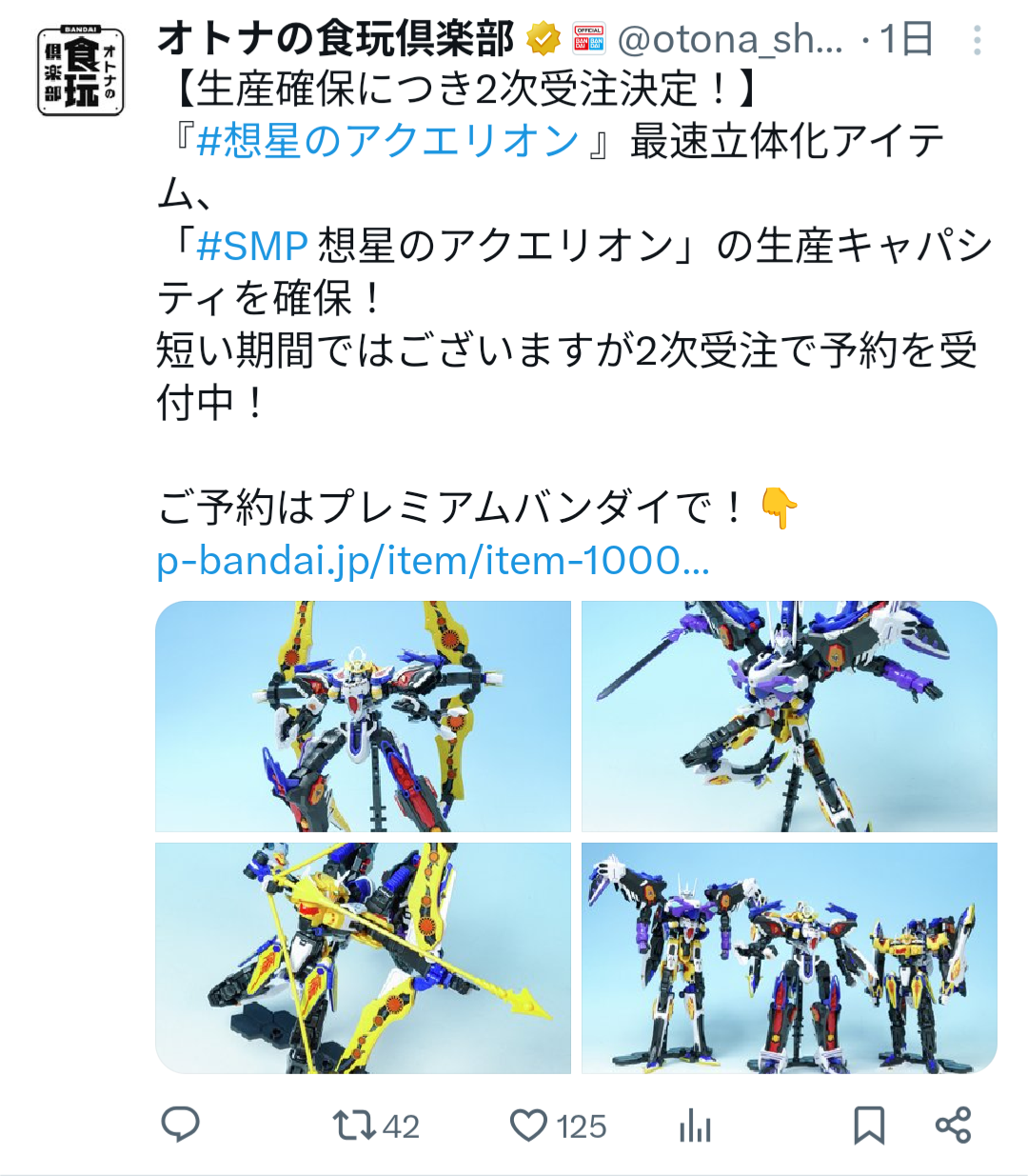 | … | 118無念Nameとしあき25/11/05(水)17:52:09No.1363986083+アクエリオン自体SMPと超合金魂位しか出てないような… |