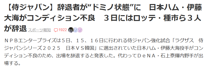 | … | 947無念Nameとしあき25/11/05(水)17:57:47No.1363987243そうだねx4 1762333067549.png-(51584 B) アメリカやドミニカならともかく韓国との強化試合なんて出る意味あるのか |