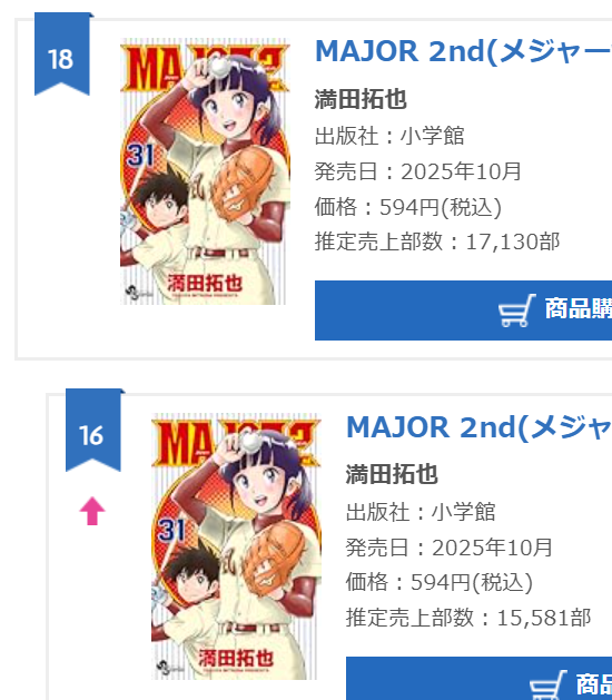 | … | 332無念Nameとしあき25/11/05(水)18:31:57No.1363993945+セカンドは女子メインになってから見なくなった前作のメジャーみたいな展開を望んでた身としては作者本当は女子野球漫画描きたかったんだろうな |