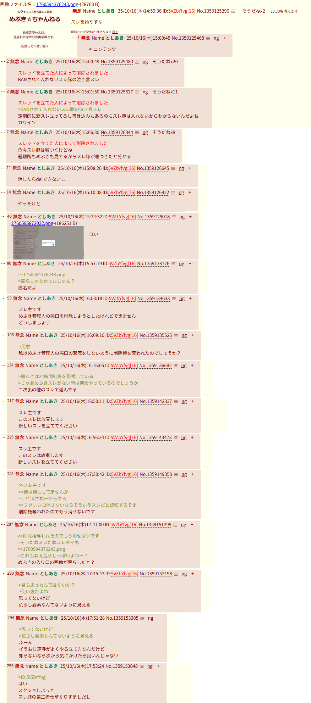 | … | 223無念Nameとしあき25/11/05(水)17:39:12No.1363983749+そういや準備板で暴れまくった馬鹿の書き込みがまだ残ってるが |