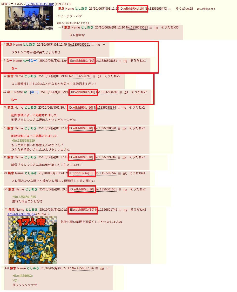 | … | 195無念Nameとしあき25/11/05(水)17:31:44No.1363982488そうだねx2>もう開き直ってあれが荒らしの集合写真て事にした方がええと思う… |