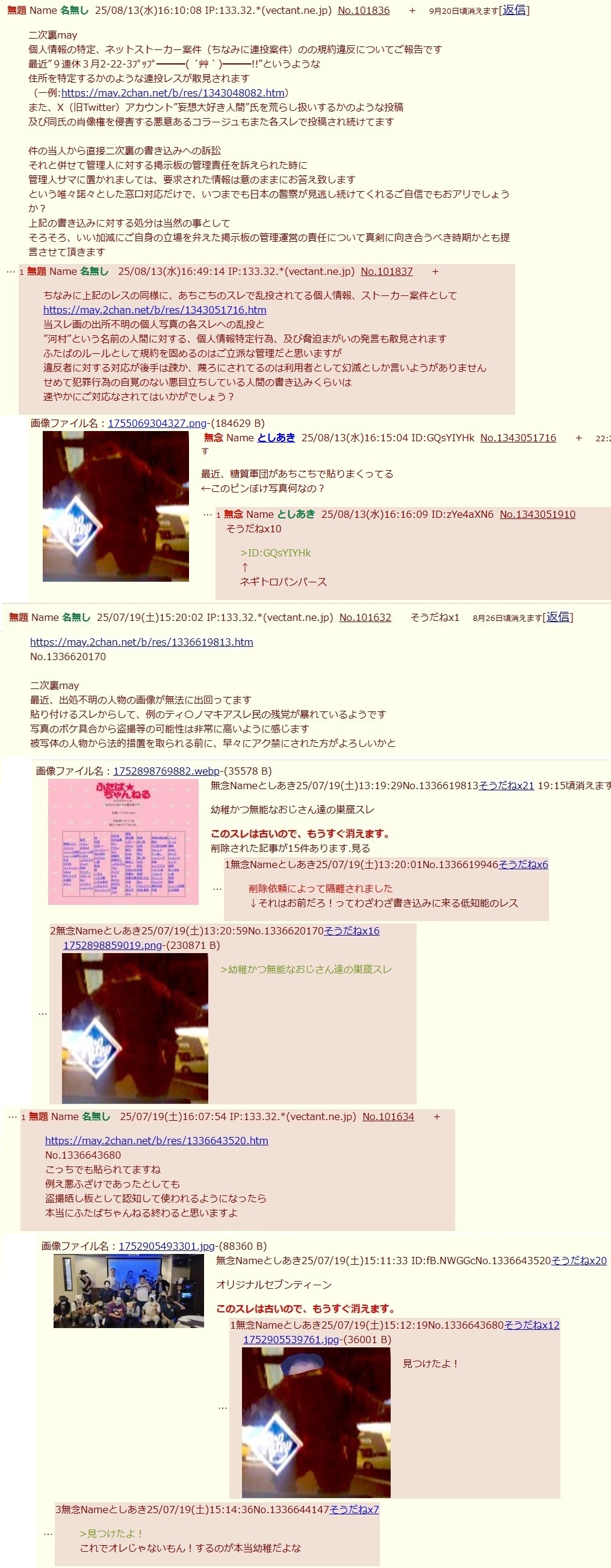 | … | 216無念Nameとしあき25/11/05(水)17:37:08No.1363983380そうだねx3>晒した写真消してほしくて準備板で管理人さん脅してるキチガイがどうしたって? |