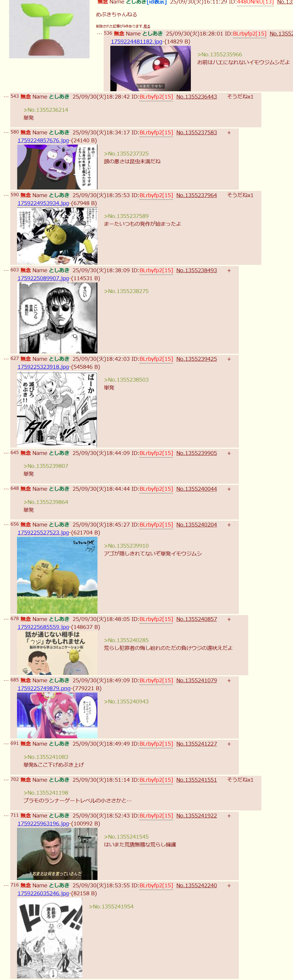 | … | 259無念Nameとしあき25/11/05(水)17:52:23No.1363986137+>関係ない画像貼るって言うのが引用荒らしにモロ刺さってるんだけど |