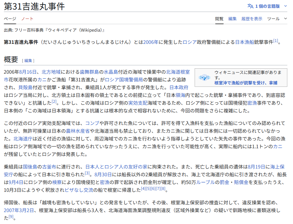 | … | 85無念Nameとしあき25/11/05(水)18:06:31No.1363988936+>カニ漁とかマグロ漁船がロシアに近づきすぎて |