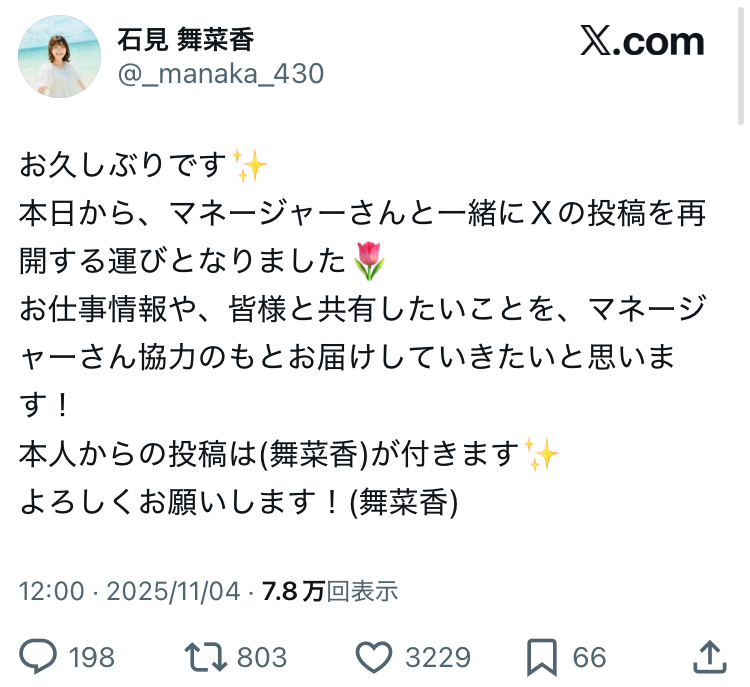 石見舞菜香さんSNS復帰おめでとうこのスレは古いので、もうすぐ消えます。