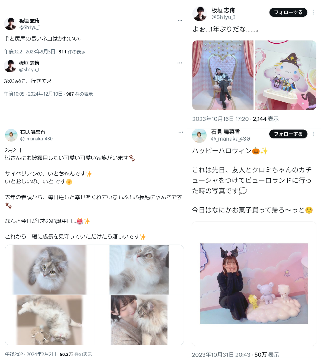 | … | 346無念Nameとしあき25/11/05(水)22:27:00 ID:R8dA3IvgNo.1364059670+>石見舞菜香さんSNS復帰おめでとう |